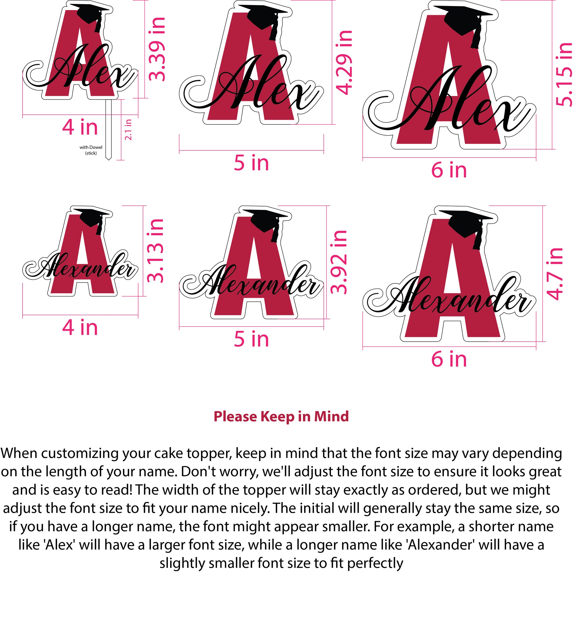 Celebrate your graduate with this elegant customizable cake topper. Feature their first initial with a graduation cap perched atop, their full name centered within the letter, and optional year engraving on the cap. Select your color palette to coordinate with class colors or party décor. Choose between a dowel base for easy insertion or a standalone design. A sophisticated finishing touch that honors the milestone.